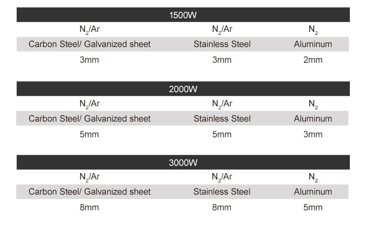 1) Matériaux et épaisseur de soudage : pour correspondre à la puissance du générateur laser qui vous convient.