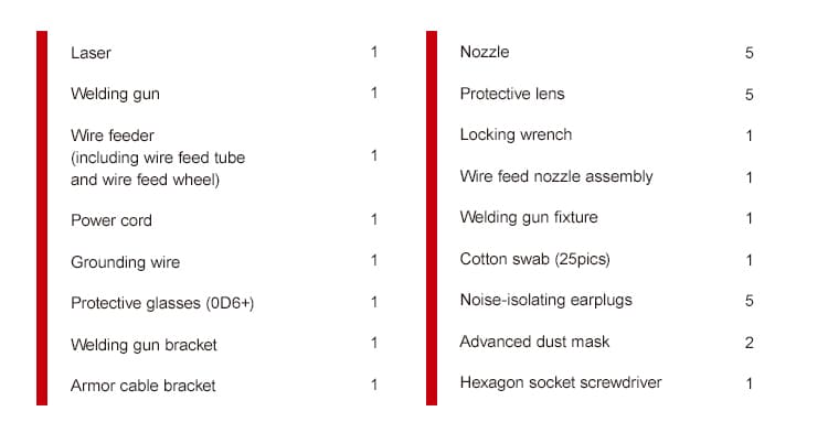 1) Matériaux et épaisseur de soudage : pour correspondre à la puissance du générateur laser qui vous convient.
